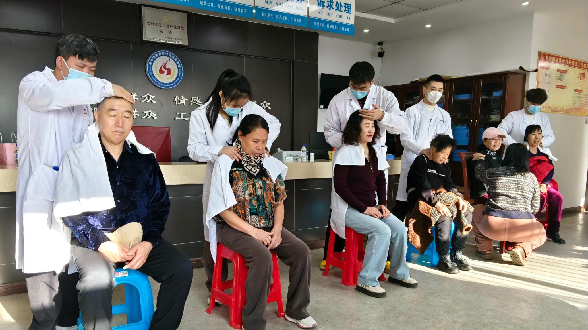 长春市妇联执委、校妇委会主任李欣在致辞中,向双阳区奢岭村的父老乡亲转达了学校师生的问候与关怀。志愿服务活动聚焦双阳区奢岭村妇女儿童和村民的实际需求,为村民带来了针灸推拿、健康指导等服务。吉林省巾帼志愿者协会会员、特殊教育学院艾民教授,特殊教育学院教工第一党支部书记马德慧老师带领师生为村民进行详细的检查诊断,针对村民颈肩腰腿痛等常见病,运用针灸推拿专业手法进行治疗,并细致讲解日常保健知识和简单拉伸技巧,指导大家通过科学方式缓解身体疲劳。