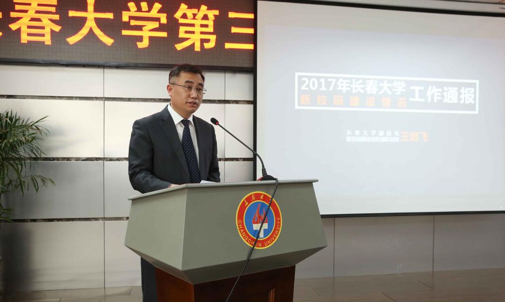 会议首先听取了副校长、新校园建设指挥部总指挥王剑飞所作的《2017年长春大学新校园建设情况工作通报》,并从为什么搬迁、怎么搬迁、往哪搬迁、进展到什么程度四个方面介绍了新校园建设情况。