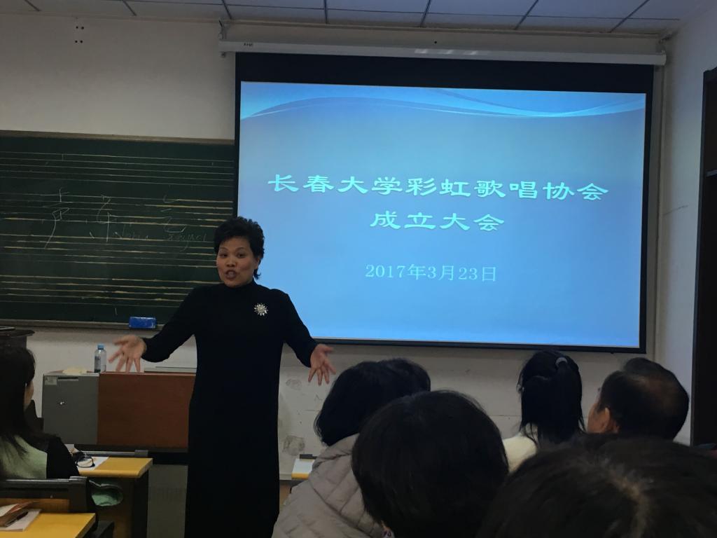 在成立仪式上,会员举手表决通过了由协会发起人翟英老师宣读的“长春大学彩虹歌唱协会章程”和由妇委会主任隋力力老师宣读的协会组织机构和人员组成,校工会主席吕中华为协会致辞并送上最真挚的祝福。最后,协会会长金银顺老师(音乐学院声乐教授、国家一级演员)对协会的课程安排和要求向会员作简要说明,并开启彩虹歌唱协会的第一次授课。