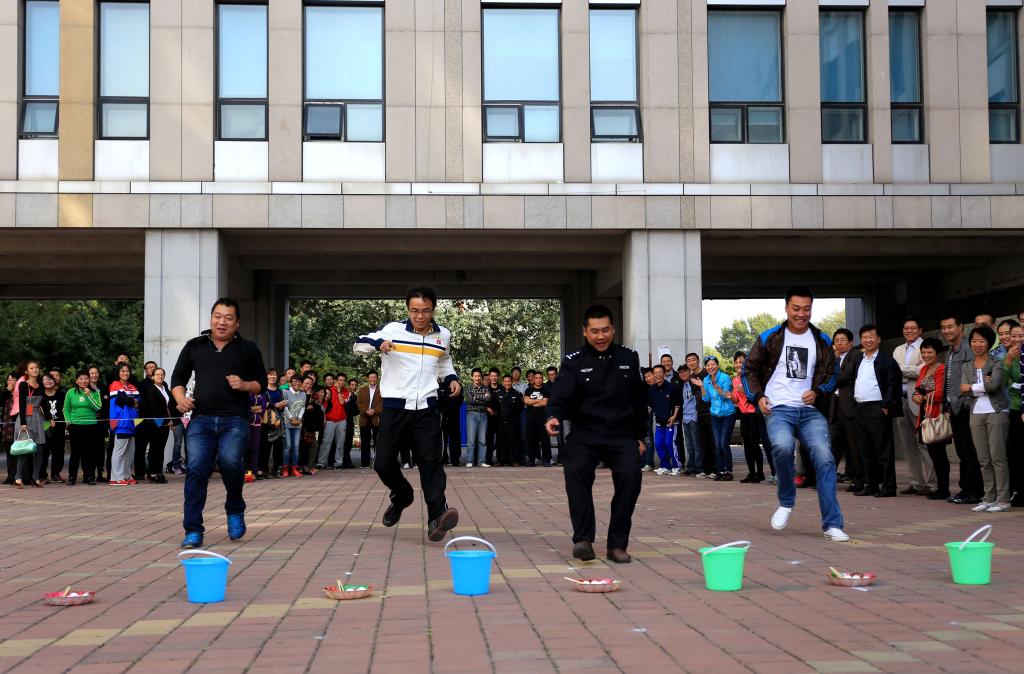 秋风送爽,丹桂飘香,在共和国六十五周年华诞前夕,为活跃学校教职工的业余生活,9月26日,以“我运动、我健康、我参与、我快乐”为主题的2014长春大学首届教职工趣味运动会在综合楼C区与D区之间室外广场隆重举行。运动会由校工会、妇委会主办,体育教研部协办。校长潘福林、党委副书记郑永奎、副校长庄树范、副校长李占国、党委副书记靳国庆等领导,以及来自23个基层分工会的680余名参赛教职员工和 50余名大学生志愿者参加了比赛。