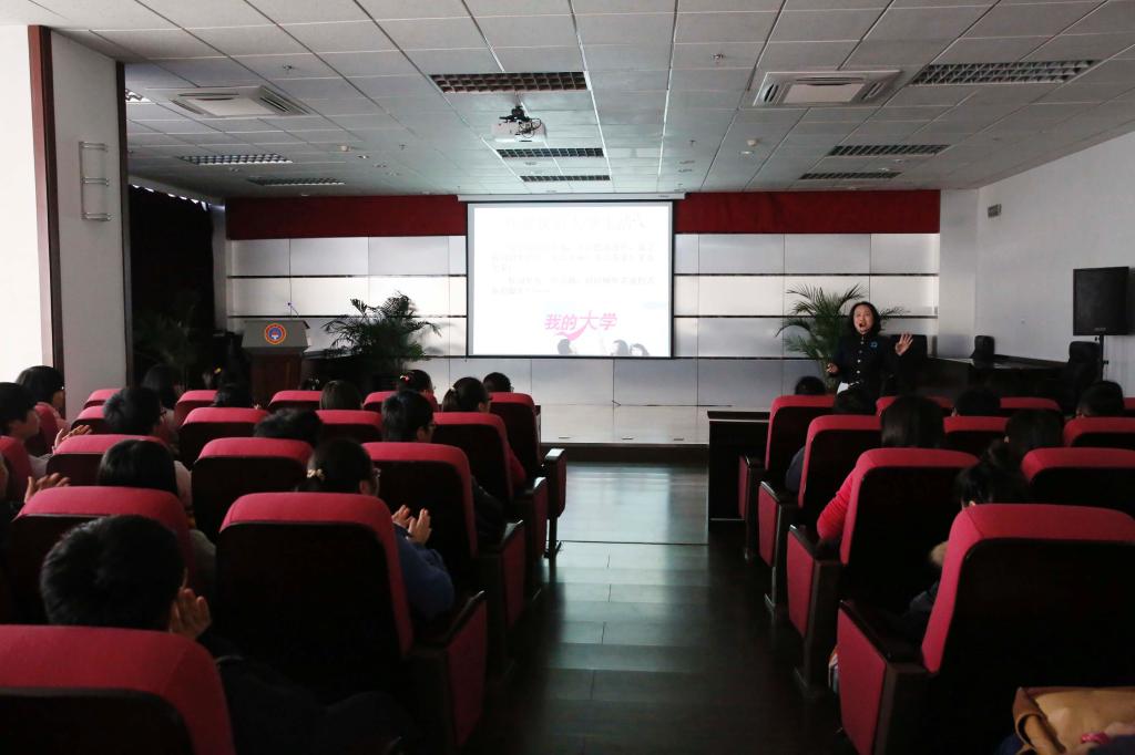 伴随着《20年后再相会》这首富含对青春回味与憧憬的歌曲,姜淑兰老师通过大量图文并茂的课件、感人的事例以及现场互动的灵活教学方式围绕什么是大学、大学生应如何面对大学生活以及在大学里应该如何规划自己的人生三个方面与在场的大学生们一起分享了共同关注的话题。